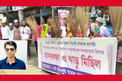 নারায়ণগঞ্জের ফতুল্লার কাশীপুর ইউনিয়নের একটি এলাকার নাম পরিবর্তনের চেষ্টার অভিযোগ তোলা সাবেক ছাত্রদল নেতার বিরুদ্ধে এবার এলাকাবাসীর একাংশ ঝাড়ু মিছিল করেছে। ৩০ সেপ্টেম্বর মঙ্গলবার বেলা এগারোটায় ইউনিয়নের চর কাশীপুর এলাকার কামালবাজারে মানববন্ধন করেন তারা। পরে তারা হাতে ঝাড়ু নিয়ে স্থানীয় ছাত্রদল নেতা সাইদুর রহমানের বিরুদ্ধে মিছিল করেন।