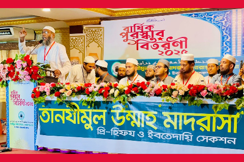 নারায়ণগঞ্জের সিদ্ধিরগঞ্জ এলাকার চিটাগাংরোডে গ্র্যান্ড তাজ পার্টি সেন্টারে ২ অক্টোবর বৃহস্পতিবার দুপুরে তানযীমুল উম্মাহ মাদ্রাসা, নারায়ণগঞ্জ শাখা প্রি-হিফয ও ইবতেদায়ী সেকশনের বার্ষিক পুরস্কার বিতরণী অনুষ্ঠান -২০২৫ এর দ্বিতীয় অধিবেশনে