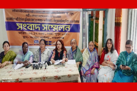 ২ ডিসেম্বর মঙ্গলবার বেলা সাড়ে ১২টায় শহরের মিশনপাড়া এলাকায় সংগঠনটির জেলা অফিসে আন্তর্জাতিক নারী নির্যাতন প্রতিরোধ পক্ষ ও বিশ্ব মানবাধিকার দিবস উপলক্ষে আয়োজিত সংবাদ সম্মেলনে এসব তথ্য তুলে ধরেন নেতৃবৃন্দ।