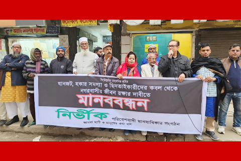 নারায়ণগঞ্জের শহরের অসহনীয় যানজট, হকার সমস্যা ও ছিনতাইকারীদের কবল থেকে নগরবাসীর জীবন রক্ষার দাবীতে ২৯ ডিসেম্বর সোমবার সকাল ১১টায় প্রেস ক্লাব চত্ত্বরে পরিবেশবাদী মানবাধিকার সংগঠন “নির্ভীক” এর মানববন্ধনে তিনি এ কথা বলেন।