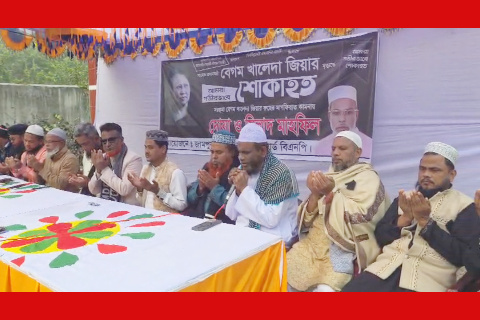 বিএনপি চেয়ারপারসন ও সাবেক তিন বারের প্রধানমন্ত্রী মরহুমা বেগম খালেদা জিয়ার আত্মার রুহের মাগফিরাত কামনায় নারায়ণগঞ্জের সোনারগাঁও উপজেলার জামপুর ইউনিয়নে বিএনপির উদ্যোগে দোয়া ও মিলাদ মাহফিল অনুষ্ঠিত হয়েছে।