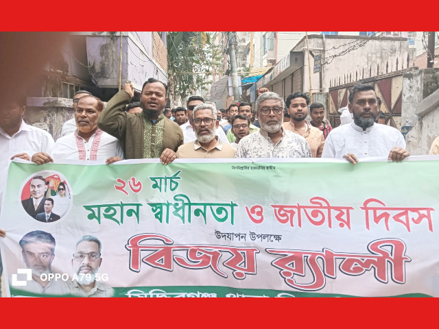মহান স্বাধীনতা দিবস উপলক্ষ্যে নারায়ণগঞ্জ মহানগরীতে বিশাল র্যালী করেছেন জেলা বিএনপির যুগ্ম আহ্বায়ক মাসুকুল ইসলাম রাজীব। সেই র্যালীতে সিদ্ধিরগঞ্জ থানা বিএনপি ও এর অঙ্গ সহযোগী সংগঠনের নেতাকর্মীদের নিয়ে অংশগ্রহণ করেছেন ইমাম হোসেন বাদল ও সালাউদ্দীন আহমেদ।